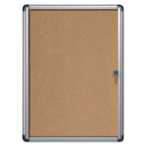 Slim-Line Enclosed Cork Bulletin Board with One Door, 28" x 38", Tan Surface, Satin Aluminum Frame