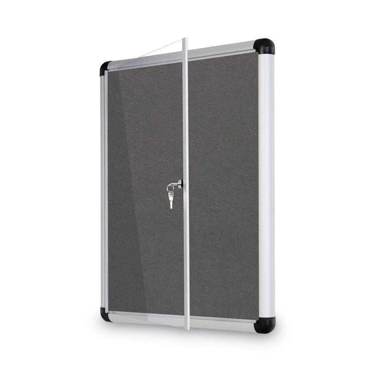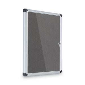 Slim-Line Enclosed Fabric Bulletin Board with One Door, 28" x 38", Gray Surface, Satin Aluminum Frame