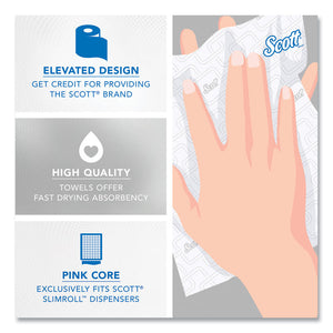 Slimroll Towels, 1-Ply, 8" x 580 ft, White/Pink Core, Traditional Business, 6 Rolls/Carton