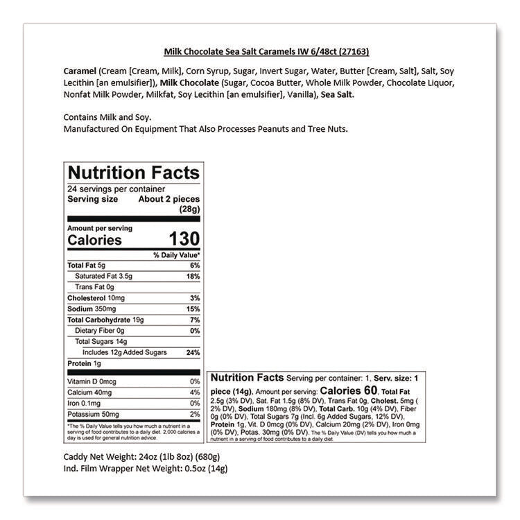 Small Batch Wonders Snack-Size Milk Chocolate Sea Salt Caramels, 0.5 oz Individually Wrapped, 48/Box