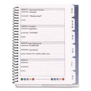 Make life easier and keep all of your password information together in one convenient location. Twelve, 1/6-cut alpha tabs help you organize your various accounts, so you can flip directly to the entry you need. A standardized entry format provides boxes for the website address, date and your user-name as well as plenty of space for your password, security questions and any additional contact information you might have for the associated organization. Sturdy, bend-, tear- and scratch-resistant cover along with premium paper stock helps ensure your important information is kept neat and clean.