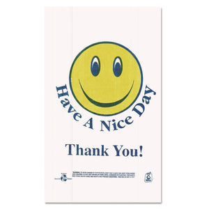 Smiley Face Shopping Bags, Thank You - Have a Nice Day Labeling, Cut-Out Handles, 11.5" x 6.5" x 21", White/Red, 900/Carton