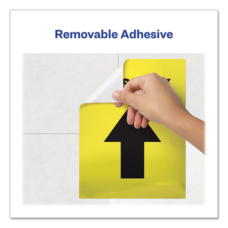 Social Distancing Floor Decals, 8.5 X 11, This Way, Yellow Face, Black Graphics, 5/pack