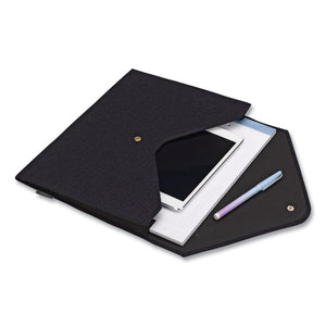 The Smead Soft Touch Cloth Expanding File is a trendy yet professional way to keep you organized. Great for customer meetings and working away from your home office. Features a soft cloth exterior with matching sewn stitching, black cloth interior and snap closure. Expands up to 2" to allow for multiple storage options, such as a tablet or small laptop, phone, lined note pad or journal.