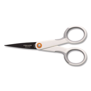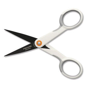 Fiskars® SoftGrip® Nonstick Scissors help to elevate your creativity by providing unique design and blade coating for intricate cuts on sticky materials. Micro-Tip® blades provide superior accuracy. Nonstick blade coating makes clean cuts through materials that tend to gum up like tape, vinyl, stickers and glue. High-grade stainless steel blades are precision-ground to cut all the way to the tip. Double-loop SoftGrip® handle provides excellent comfort and control for right- and left-handed users.