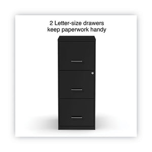 Keep important business records organized and close at hand with this three-drawer letter light duty vertical file cabinet. Ideal for workplaces of all sizes, this compact cabinet takes up minimal floor space and adds a contemporary touch to office decor with its sleek finish and polished handles. The Alera 3-Drawer File Cabinet is made with lightweight yet tough steel and includes a built-in lock to secure your files.