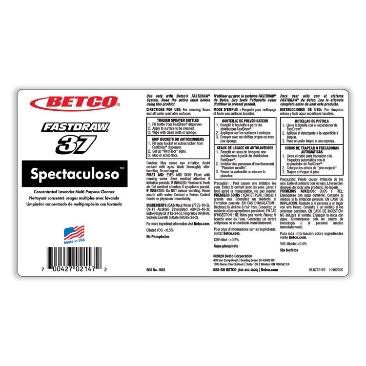 Spectaculoso Multipurpose Cleaner, Lavender Scent, 67.6 Oz Bottle, 4/carton