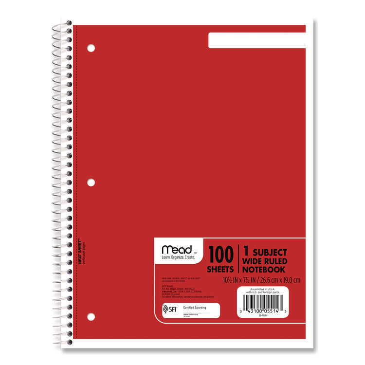 Spiral Notebook, 1-Subject, Wide/Legal Rule, Randomly Assorted Cover Color, (100) 10.5 x 7.5 Sheets