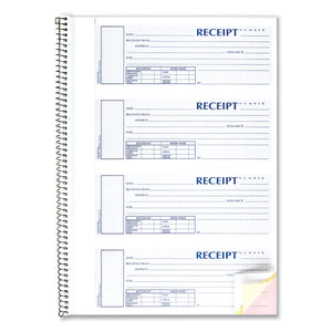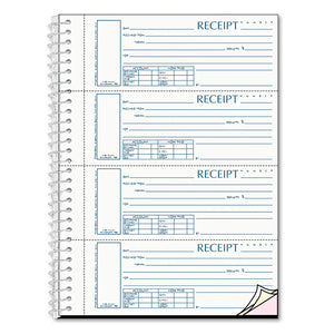 Spiralbound Unnumbered Money Receipt Book, Three-Part Carbonless, 7 x 2.75, 4 Forms/Sheet, 120 Forms Total