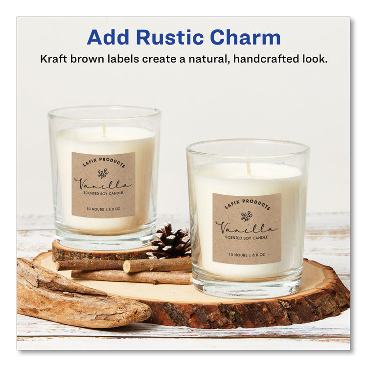 Square Print-To-The-Edge Labels, Inkjet/laser Printers, 2 X 2, Kraft Brown, 12/sheet, 25 Sheets/pack