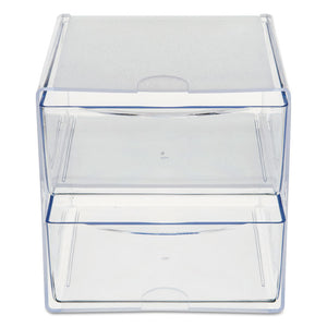 Stackable Cube Organizer, 2 Compartments, 2 Drawers, Plastic, 6 x 7.2 x 6, Clear
