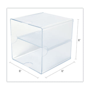 Transparent, stackable cube organizer keeps your workspace clutter-free and supplies close at hand. Ideal for storing small supplies. Drawers are clear so you can easily see what's inside, and removable so you can get what you need quickly. Modular organizers stack together with linking clips, letting you create a custom storage system. One linking clip included per cube organizer. Sturdy plastic construction.