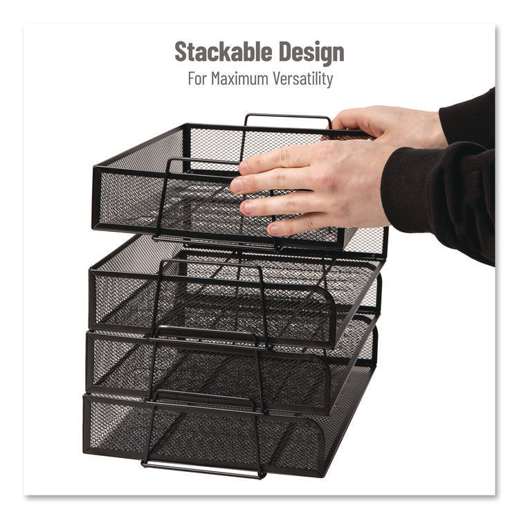 Boost your productivity with this stackable desktop organizer. Specifically designed for letter-size papers, folders and files, this organizer lets you keep your essential documents within arm's reach. The individual pieces can be stacked for convenient access, placed separately on your desk for diverse storage, or used in different locations - like your office and home. Each piece is lightweight, portable and easy to handle. Beyond just holding files and folders, this organizer is versatile enough to store other office supplies like pencils, scissors and rulers, helping to keep your workspace tidy. It can also be a practical addition to your home office or other areas like the kitchen. The see-through mesh construction ensures visibility, allowing you to quickly locate and retrieve what you need. The sturdy mesh metal design is built to withstand daily use, and its neutral color blends effortlessly with any decor. For a coordinated look, pair it with other pieces from the Network Collection. This organizer makes a fantastic gift for colleagues, graduates, new homeowners, or anyone seeking a stylish and practical solution to declutter their workspace.