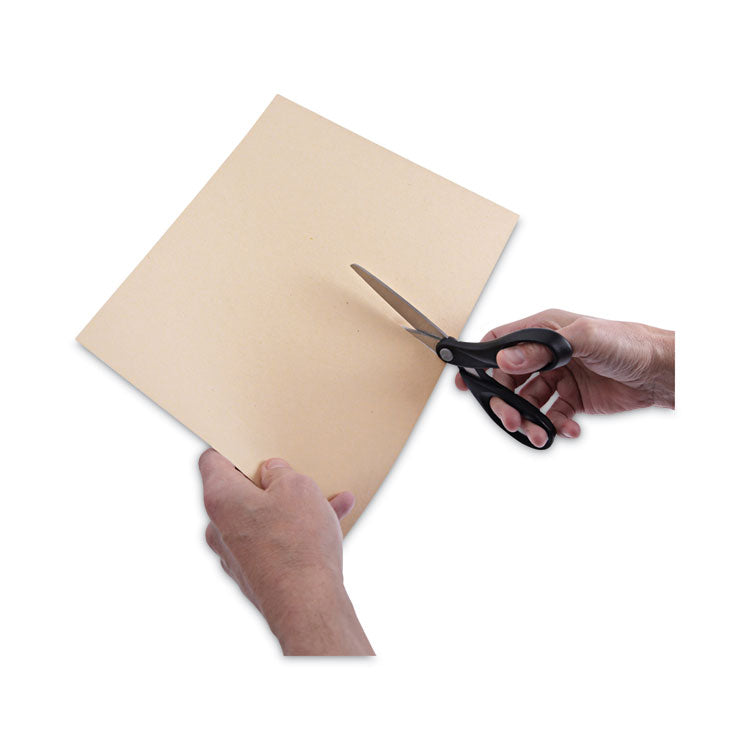 Stainless Steel Office Scissors, 8" Long, 3.75" Cut Length, Straight Black Handle