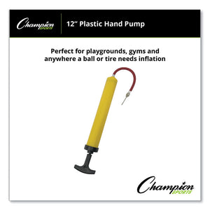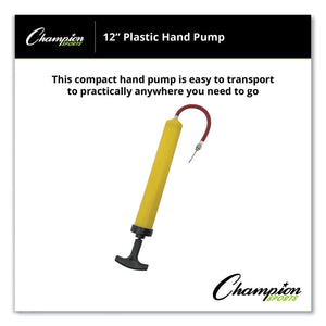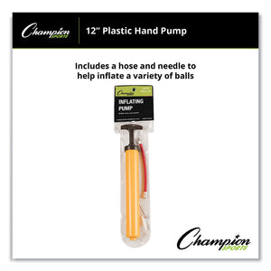 The Champion Sports 12-inch Plastic Hand Pump is your portable solution for keeping balls and tires topped off wherever you need them. This compact and lightweight pump is easy to throw in a gym bag, backpack, or even the trunk of your car. No more scrambling for misplaced pumps or relying on others to inflate your equipment. The easy-to-use design makes inflation a breeze, even for young athletes. The simple hand motion gets the job done quickly, and the hose and needle attachment provide versatility for inflating a variety of balls, from volleyballs to soccer balls to pool inflatables. Don't let a deflated ball sideline you. The Champion Sports 12-inch Plastic Hand Pump keeps you in the game, ready for action anytime, anywhere. Add this handy pump to your sports equipment collection today!