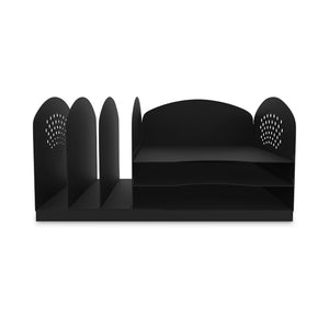 Deluxe Combination Desktop Sorter provides both horizontal and vertical filing compartments for extra versatility, allowing you to keep important files and documents organized and easily accessible at your workstation. Slightly back-tilted horizontal trays help ensure documents and files remain neatly contained, and front-facing vertical-rack compartments allow you to store frequently accessed materials at a uniform height, within easy reach. Sturdy, 17-gauge steel construction delivers durable performance, and tastefully decorative end panels add an element of sophistication to any office space. A mar-resistant, powder-coat finish helps protect the sorter from messy fingerprints and unseemly scratches, while the sorter's folded-steel base's rubber feet keep the sorter in place and your worksurface protected.
