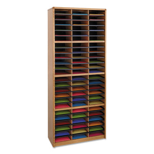 Steel/Fiberboard Literature Sorter, 72 Compartments, 32.25 x 13.5 x 75, Med Oak