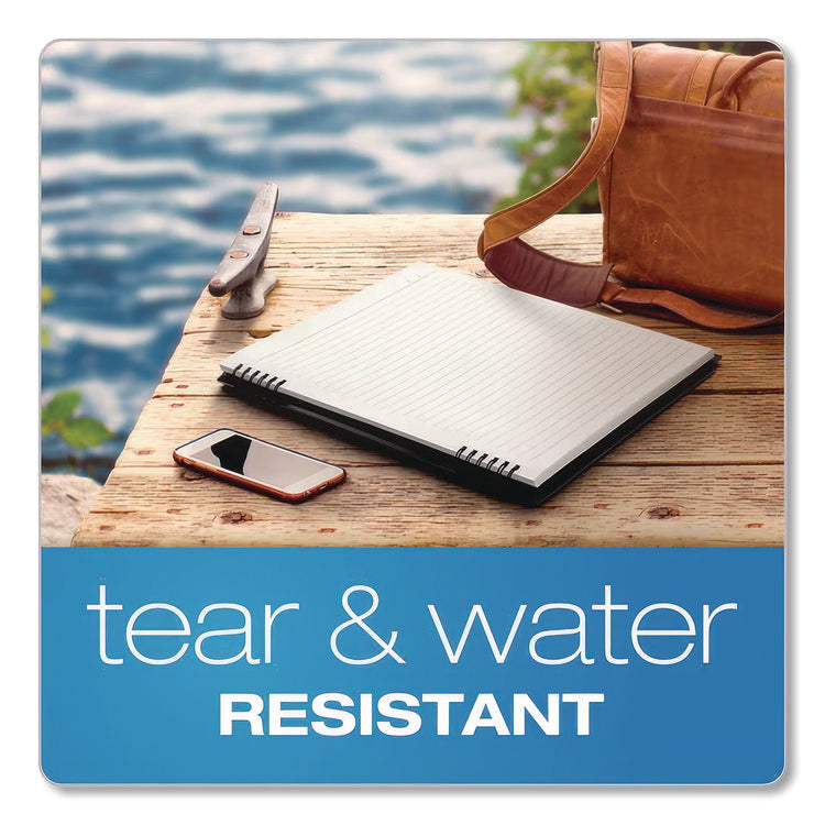 Inspired originality to inspire your originality—begin your next masterpiece in a Stone Paper Notebook. Beautifully bound book provides a resilient, water-proof place for your first drafts, notes, plans and interesting thoughts—no special pens or pencils required. Thick, crushed-stone-based paper, superior in nearly every way to traditional wood-pulp or plant-based-fiber alternatives, delivers smooth, ink-bleed-proof writing that you'll literally be putting in stone. Fiber-free, grain-free sheets are easy to cut with scissors but nearly impossible to tear. Attractive, heavyweight vinyl cover features both internal metallic-filament mechanical binding and external twin-wire loop binding, ensuring that this book's contents remain contained while allowing the book to lie perfectly flat when fully open or folded over on itself.