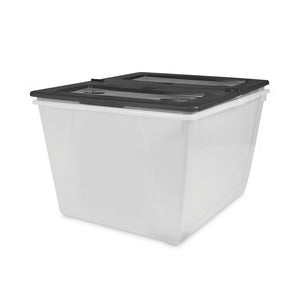 Storage Tote, 16 Gal, 22.7" X 18.25" X 12.86", Clear/black