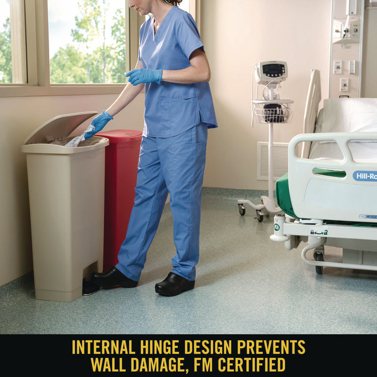 Streamline Resin Step-On Container, Front Step Style, 18 gal, Polyethylene, Beige