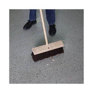 Long, coarse bristled brush head effectively pushes litter and debris with ease to clean more efficiently. Built with one tapered and one threaded handle hole that enable front-to-back orientation changes for more even wear. For use with threaded 1.13-inch diameter handles, which are sold separately. 16" wide hardwood block brush for maximum coverage and durability.Ideal for hard, floor surfaces, indoors or outdoors.