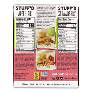 Bobo's Strawberry and Apple Pie Stuff'd oat bite pack gives you two of Bobo's fans' favorites. Perfect for your on-the-go lifestyle, these yummy treats will satisfy your sweet tooth and give you an extra energy boost to take you through the day. Plus, they're stuffed with real, fresh fruit jam.