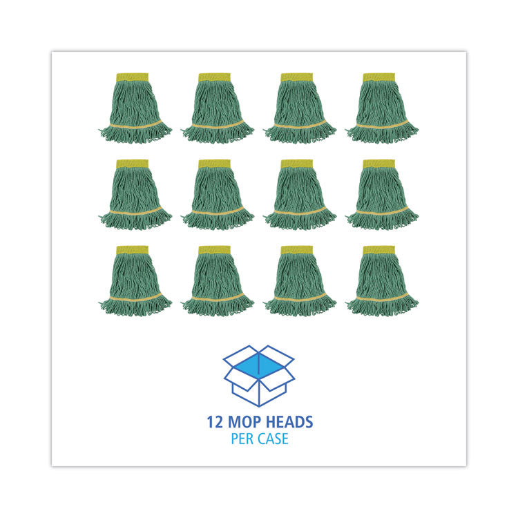 Super Loop Wet Mop Head, Cotton/synthetic Fiber, 5" Headband, Small Size, Green, 12/carton