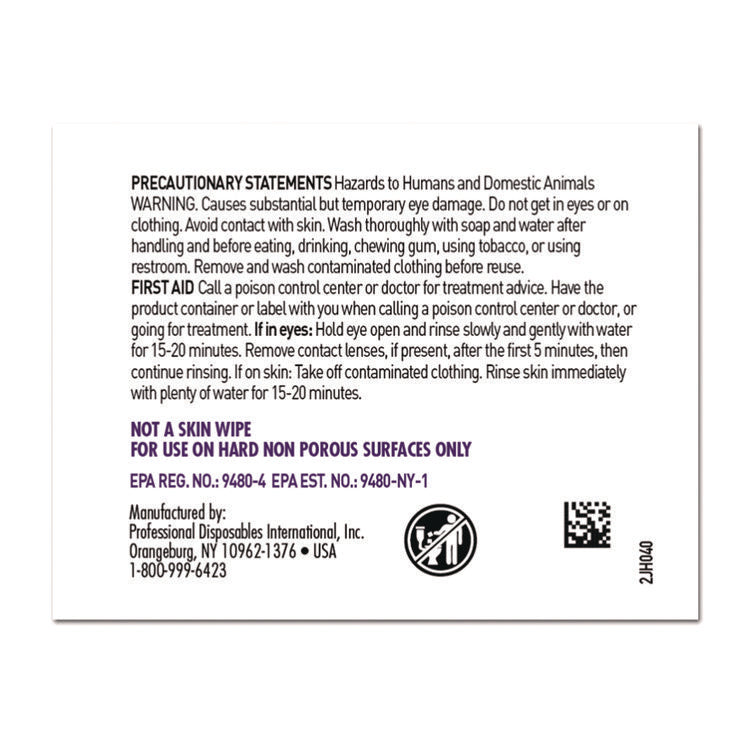 Super Sani-Cloth germicidal disposable wipes are proven effective against enveloped and non-enveloped viruses, fungi, bacteria, multidrug-resistant bacteria and blood-borne pathogens—32 microorganisms in all, including SARS-CoV-2. A fast contact time of just two minutes accommodates quick room turnovers, making them ideal for daily use in fast-paced environments that require short contact times and broad microorganism coverage. Thick and strong with a high fluid capacity, each wipe is also pliable enough to get into tight crevices and corners. Safe for use on a broad range of health-care equipment and most hard, nonporous surfaces. Active ingredient: isopropyl alcohol 55.5%.