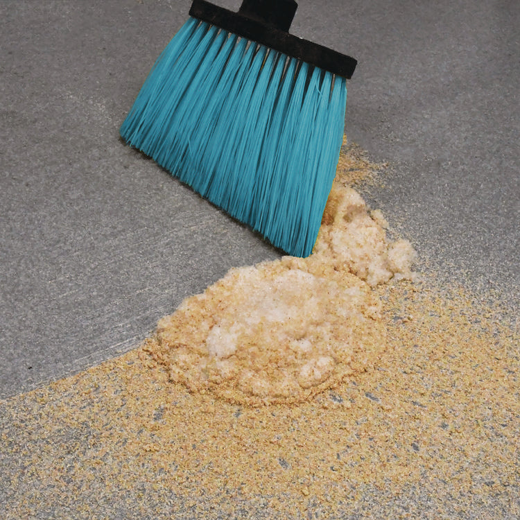 - Sprinkle evenly over the spill, wait up to two minutes depending on the spill, then sweep up with a broom.