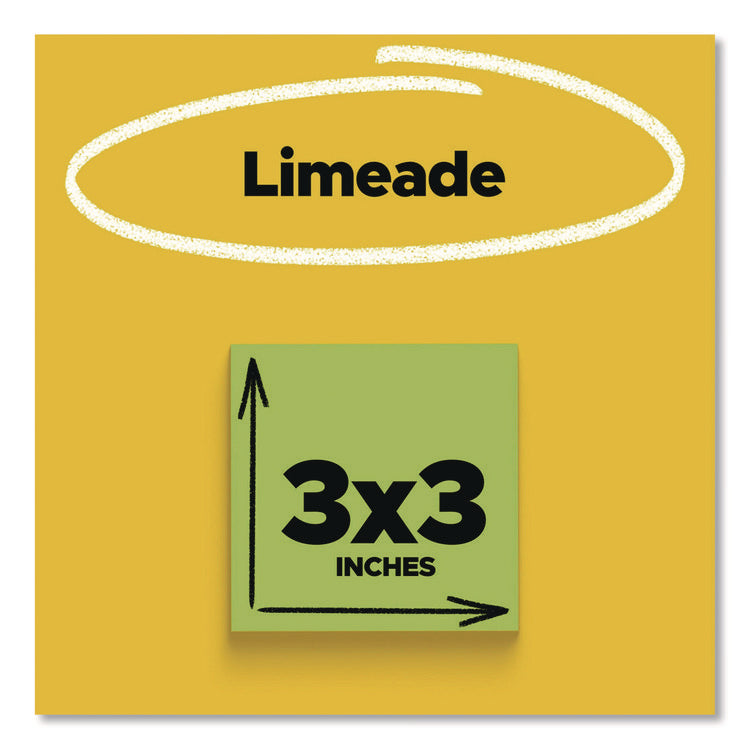 Super Sticky Pads in Energy Boost Collection Colors, 3 x 3, Limeade, 90 Sheets/Pad, 5 Pads/Pack