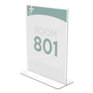 Economical, light-duty countertop sign holder lets you display signs where you need them most. Two-sided, clear design for double the impact. Perfect for any retail or commercial setting, these sign holders are an effective way to communicate, protect and display information in a way that's easy to use. Whether you're advertising daily specials, promoting an event or delivering a message, these sign holders will grab your attention. Inserts load from the bottom.