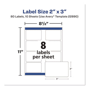 Sure Feed Glossy Labels, 2 x 3, White, 8 Labels/Sheet, 10 Sheets Pack