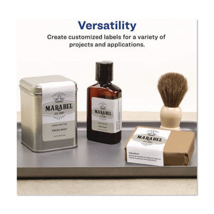 Make sure your handmade gifts and products stand out with Avery® glossy labels that offer the professional finishing touch you need. Glossy Avery® labels feature a beautiful photo-quality shine that adds an elegant glimmer to candle labels, lotion labels, soap labels and more. Create your own unique designs with hundreds of customizable Avery® templates. These glossy labels also feature exclusive Avery® Sure Feed® technology to improve print alignment and avoid jamming. The blue, textured strip on the top of each sheet provides better grip for printer rollers and helps feed the sheet through your printer. The patented Easy Peel® label design makes these labels easy to peel and quick to apply. Just bend the label sheet, peel off your labels and fold the sheet back flat. The permanent adhesive ensures that your labels stick and stay without curling, peeling or falling off. Smudge-proof when used with inkjet and laser printers.