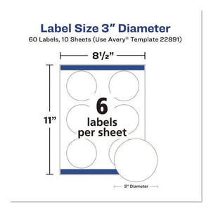 Sure Feed Glossy Labels, 3" dia, White, 8 Labels/Sheet, 10 Sheets Pack