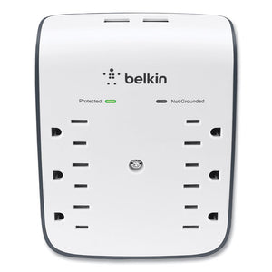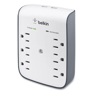 SurgePlus USB Wall Mount Charger, 6 AC Outlets/2 USB Ports, 900 J, White/Black