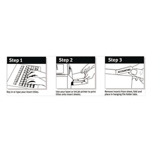 Label your hanging file folders with these tab inserts. The white background makes text jump out, resulting in clearly readable labels for your files. Customize these inserts by hand or with your printer using free templates from Avery Design & Print. The side-by-side design allows for printing on both sides. Finding the right hanging file folder will be so easy, it'll make your filing cabinet seem like an oasis of organization. Handwrite or print inserts using laser and inkjet printers. The tabs may also be labeled using a conventional typewriter.