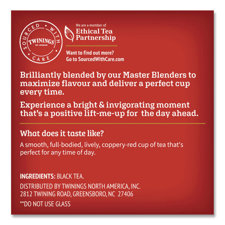 | Special Features | English Breakfast— Tea from Kenya provides the briskness and coppery-red color while Assam gives full-body and flavor complemented by softer teas from other regions. |