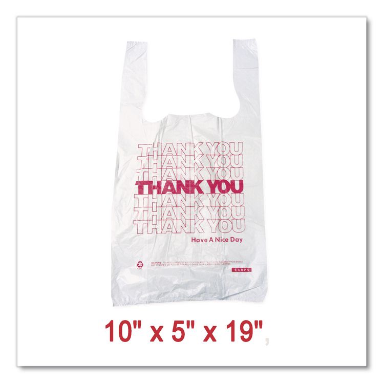 Preprinted "Thank You" shopping bags help you show appreciation while boosting your image. Strong, high-density plastic resists tearing and splitting. Convenient handles.