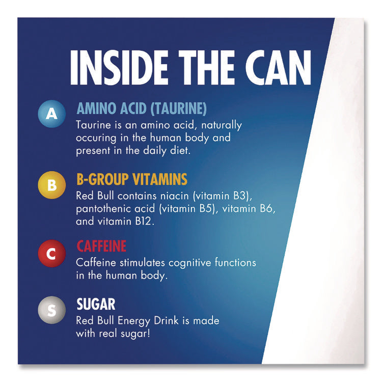 Energy drinks are appreciated worldwide by top athletes, busy professionals, college students, and travelers on long journeys. Energy drink vitalizes body and mind and contains 27 grams of sugars. The formula of Red Bull The Red Edition contains a unique combination of high-quality ingredients, such as caffeine, B-group vitamins, sugars, and taurine.