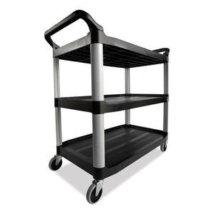 Three-Shelf Service Cart, Plastic, 3 Shelves, 200 lb Capacity, 18.63" x 33.63" x 37.75", Black