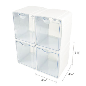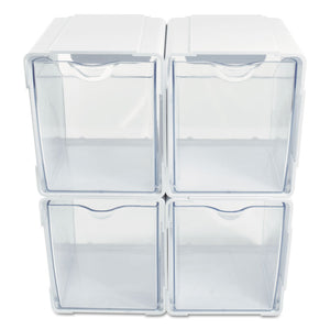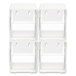 Tilt Bin Interlocking 4-Bin Organizer, Plastic, 4.63 x 4.88 x 5.5, White/Clear