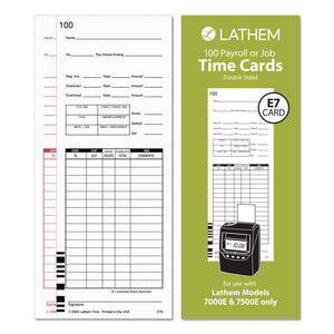 Time Clock Cards For Lathem Time 7000e/7500e, Two Sides, 3.38 X 8.78, 100/pack