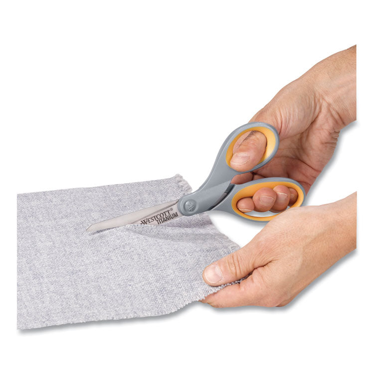 Titanium Bonded Scissors, 8" Long, 3.5" Cut Length, Straight Gray/Yellow Handle