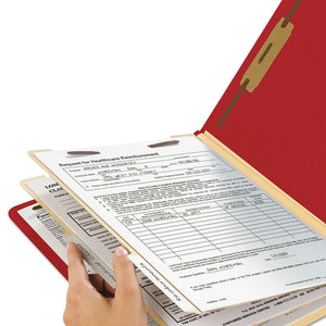 Top Tab Classification Folders, Six SafeSHIELD Fasteners, 2" Expansion, 2 Dividers, Letter Size, Red Exterior, 10/Box