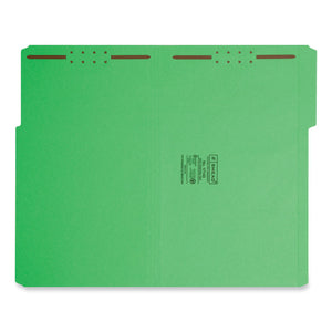 Top Tab Colored Fastener Folders, 0.75" Expansion, 2 Fasteners, Legal Size, Green Exterior, 50/Box