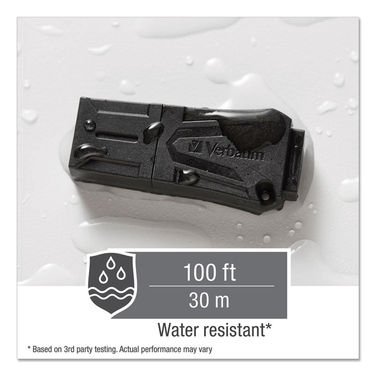 Water-resistant, crush-resistant and temperature-resistant, this USB flash drive protects against rough-and-tumble use for a variety of lifestyles. Proprietary material increases durability without adding weight, creating a uniquely tough USB drive in a slim, stylish design. Optional password protection software makes this drive as tough inside as it is outside, storing data safely and securely.