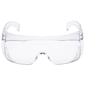 Economical protection ideal for visitors and whole crews. Clear lens and frameless design fits over most personal prescription eyewear. Polycarbonate lenses absorb 99.9% UV.