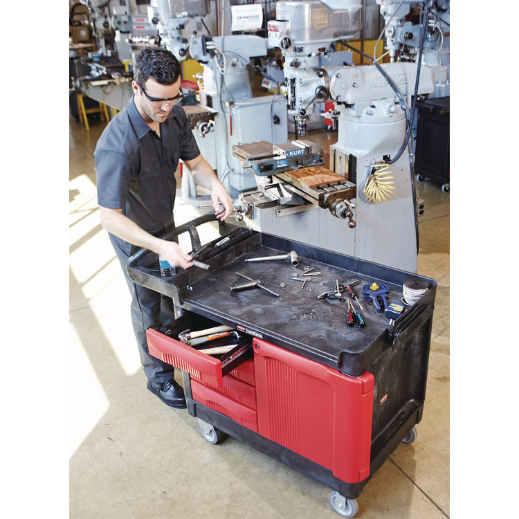 - The Rubbermaid Commercial TradeMaster Utility Cart easily transports tools and supplies where you need them.