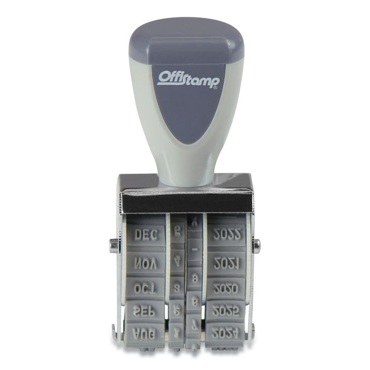 Save time—stamp rather than write the date on your important documents. Easy-to-rotate month, day and year wheels make it easy to get everything just right each and every day. Round, ergonomic plastic handle allows you to get a comfortable grip. Durable steel frame.