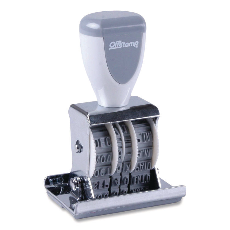 Organize everything more easily, and include a specific message with each date on your incoming and outgoing documents. Easy-to-rotate month, day and year wheels make it easy to get everything just right each and every day. Round, ergonomic plastic handle allows you to get a comfortable grip. Durable steel frame.